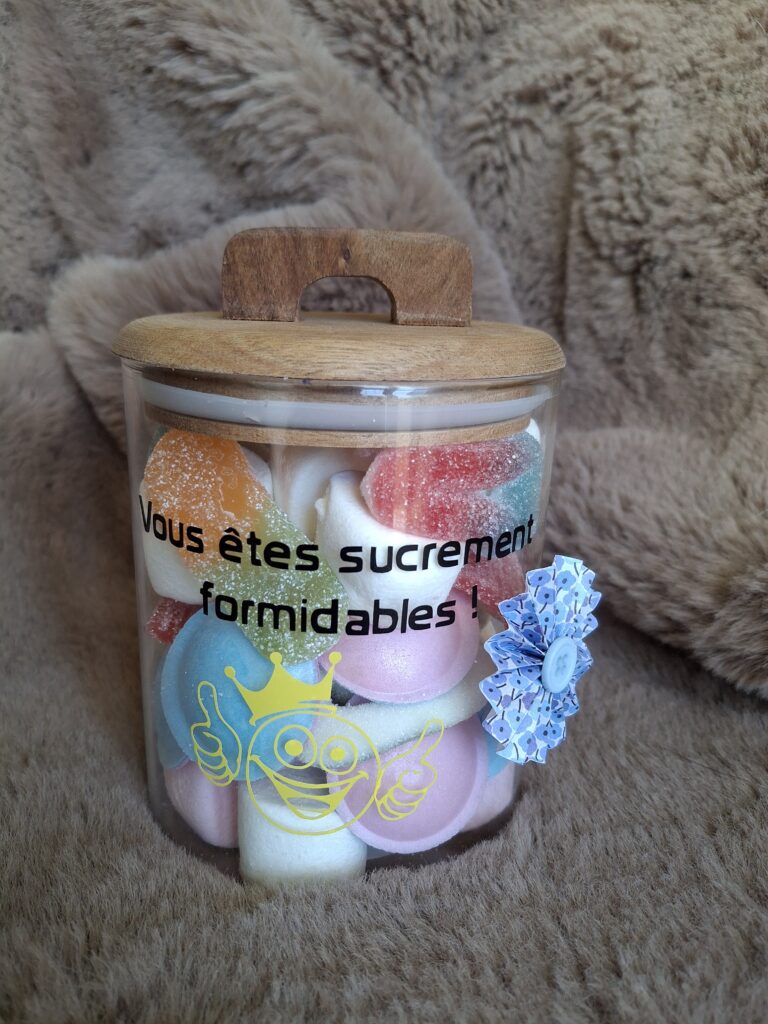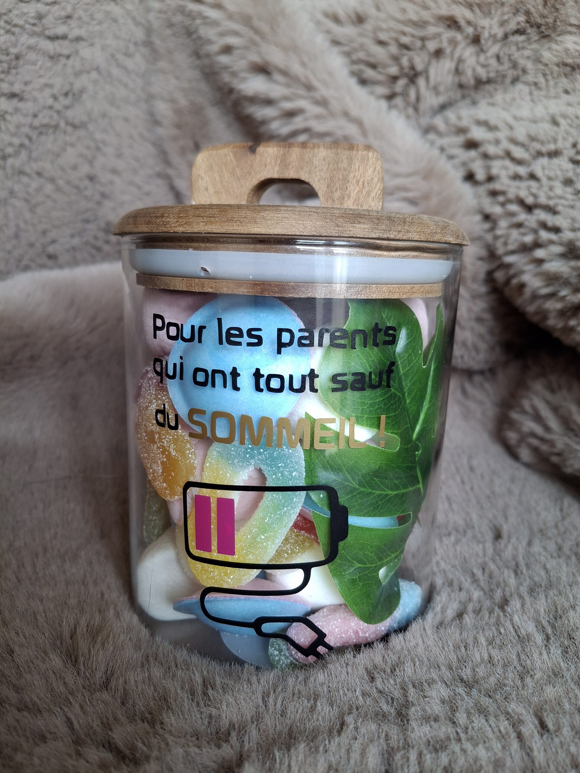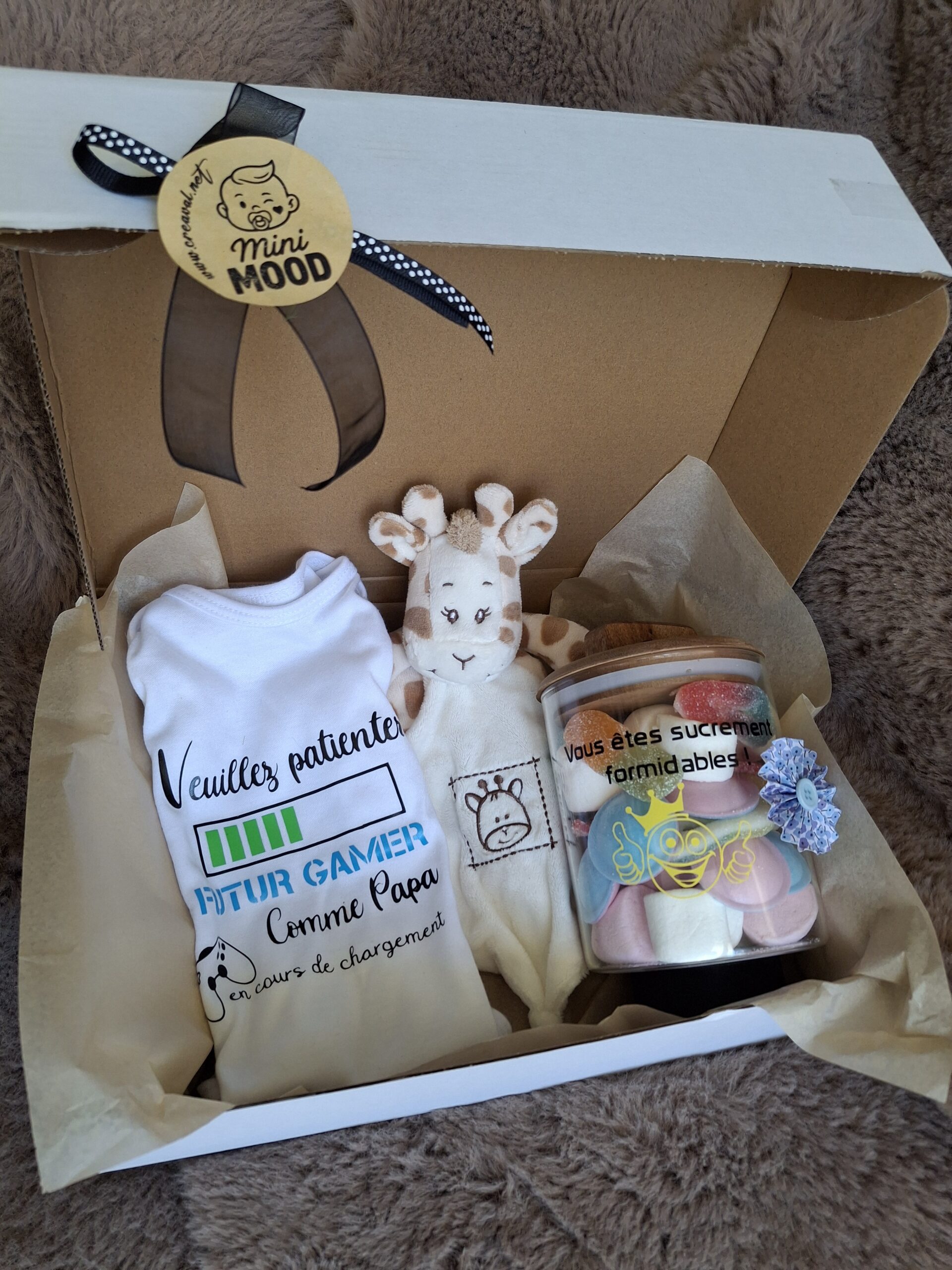 - Une boîte de bonbons gourmands pour redonner aux parents le sourire lors des nuits courtes !