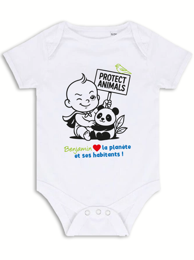 Body 100% coton blanc, papier transfert certifié OEKO-TEX Standard 100 classe 1 garantissant l’absence de substances nocives et la protection de l’environnement.